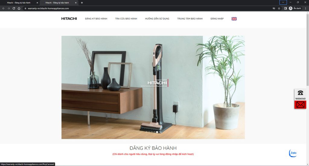 Bước 1: Truy cập trang web “https://warranty-vn.hitachi-homeappliances.com/“.